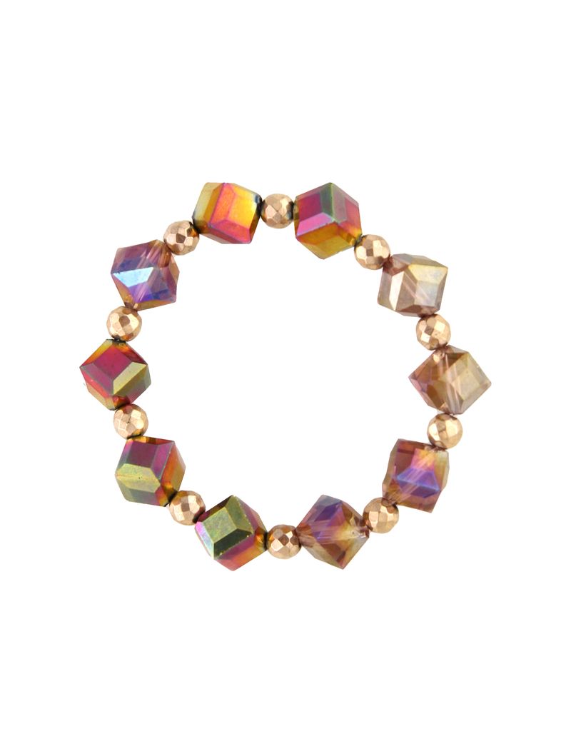 Brown Crystal Cubes with Gold faceted Magnetic Stretch Bracelet can help with Headaches, Arthritis, Carpal Tunnel and more.
